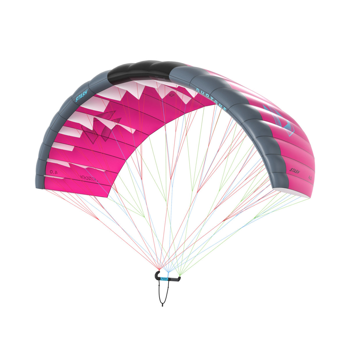 Presenta molteplici miglioramenti chiave per un livello completamente nuovo di stabilità di volo, potenza, bolina, depower e comfort di guida generale, mantenendo al contempo una facile manovrabilità e una risposta intuitiva dello sterzo. Il nostro team di progettazione ha segmentato e stabilizzato il bordo d'attacco dell'ala a un nuovo livello e ha perfezionato lo spessore del profilo e l'angolo di attacco per un ottimo mix di bassa resistenza, depower e volo stabile, ampliando il range di vento e offrendo un controllo eccezionale in base alle diverse velocità del vento e agli angoli di guida. Dotato di una leggera calotta ripstop da 30 g, che continua a volare anche con il vento più leggero, è intuitivo da manovrare e si ripiega in modo compatto, il nuovo Stash è dotato di linee inguainate migliorate con comportamento anti-groviglio e una migliore stabilità di volo. Le linee sono sufficientemente corte da consentire allo Stash di essere utilizzato facilmente in tutte le misure, da 2,2 m² a 5,6 m². Con un nuovo allungamento e una nuova curvatura, gli angoli di bolina sono notevolmente migliorati e il depower dello Stash 2026 è a un altro livello. Questo è ottenuto in due modi chiave: in primo luogo, dal design dell'ala con il triangolo di briglia del bordo d'attacco che mantiene la parte anteriore dell'ala a un angolo positivo in qualsiasi momento, in modo che l'ala mantenga una curvatura aperta solida e stabile, indipendentemente da quanto la parte posteriore dell'ala venga depotenziata. In secondo luogo, dalla nostra nuova impugnatura ergonomica, che permette di far scorrere la mano anteriore sotto le linee A, offrendo un comfort di guida e una distribuzione della potenza notevolmente migliorati. Tutti i collegamenti delle linee sono completamente integrati nell'impugnatura, inclusa un'opzione per le linee dell'imbracatura. Questo rende il nuovo Stash incredibilmente comodo da pilotare e offre una soluzione pulita ed elegante per riporre le linee senza grovigli e facilitarne il riposizionamento. La codifica a colori a 3 vie sull'ala e sulle linee, con calotta principale, bordo d'attacco e pannelli centrali LE, oltre alle tre file di linee tutte di colori diversi, rende districarle e partire un gioco da ragazzi. Il mondo delle sensazioni puramente foiling ha raggiunto un nuovo livello di accessibilità con la Stash 2026 di DUOTONE!